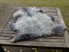 mittelgroßes graues Lammfell mit Aalstrich und schwarzem Hals - einmal geschoren