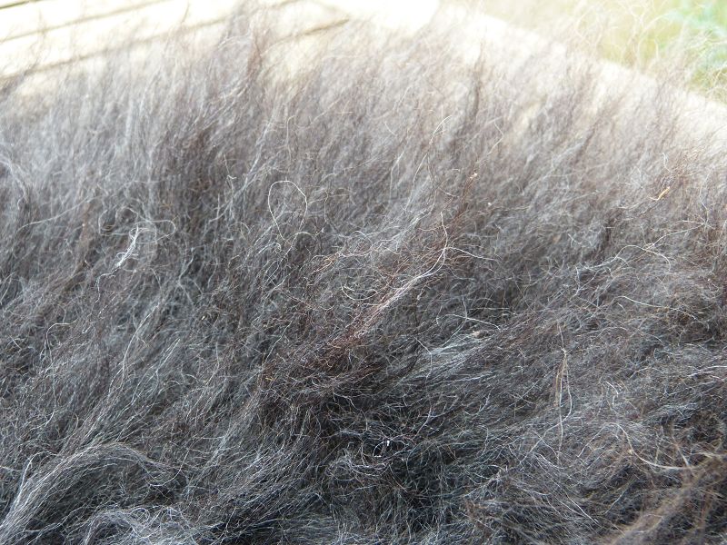 mittelgroßes Fell in schönen grau Schattierungen, dichter Flor, einmal geschoren