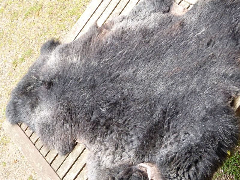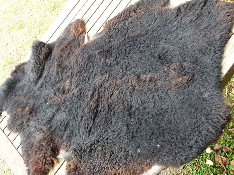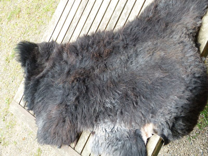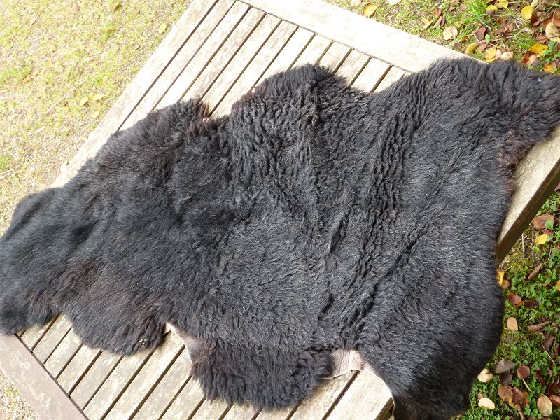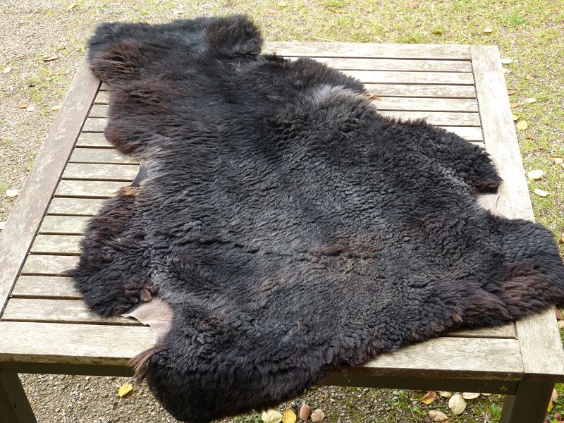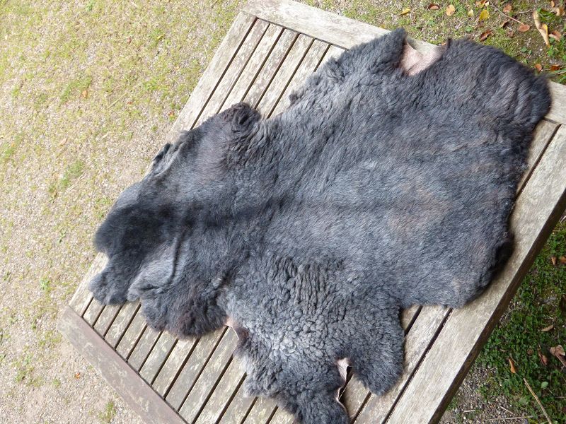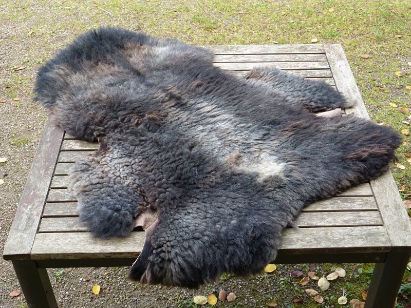 kleines Lammfell in blau also ziemlich dunkel, einmal geschoren