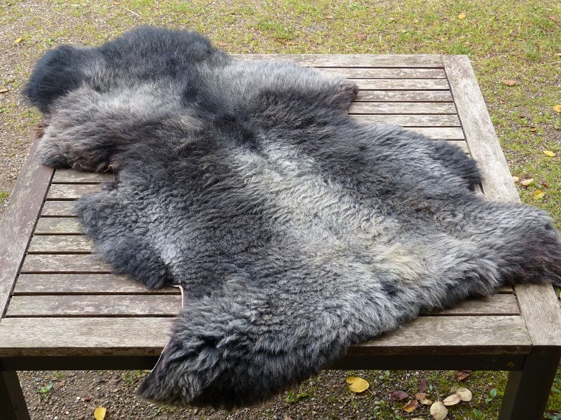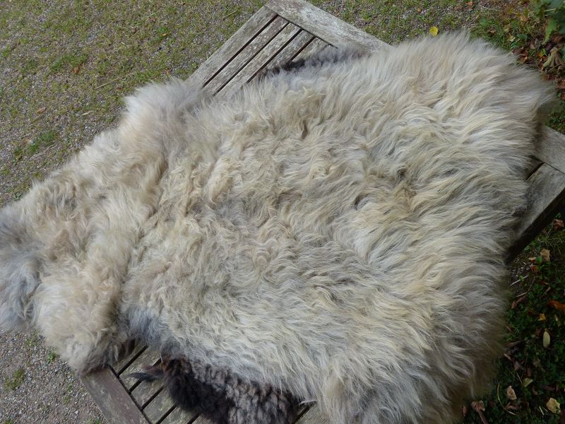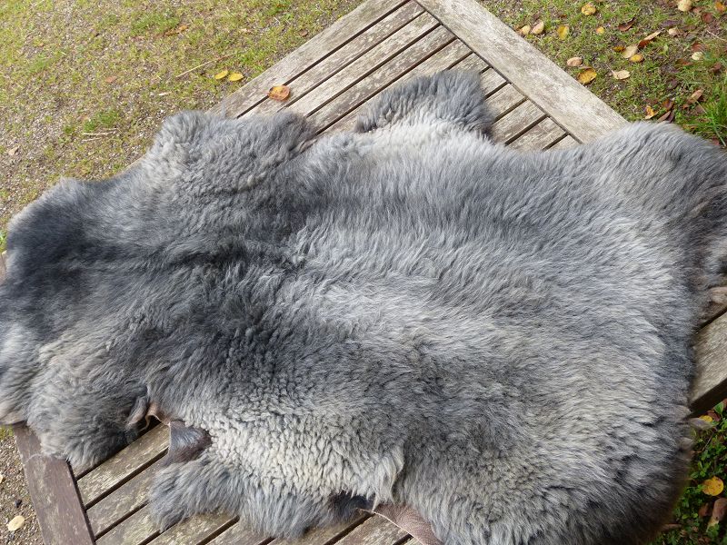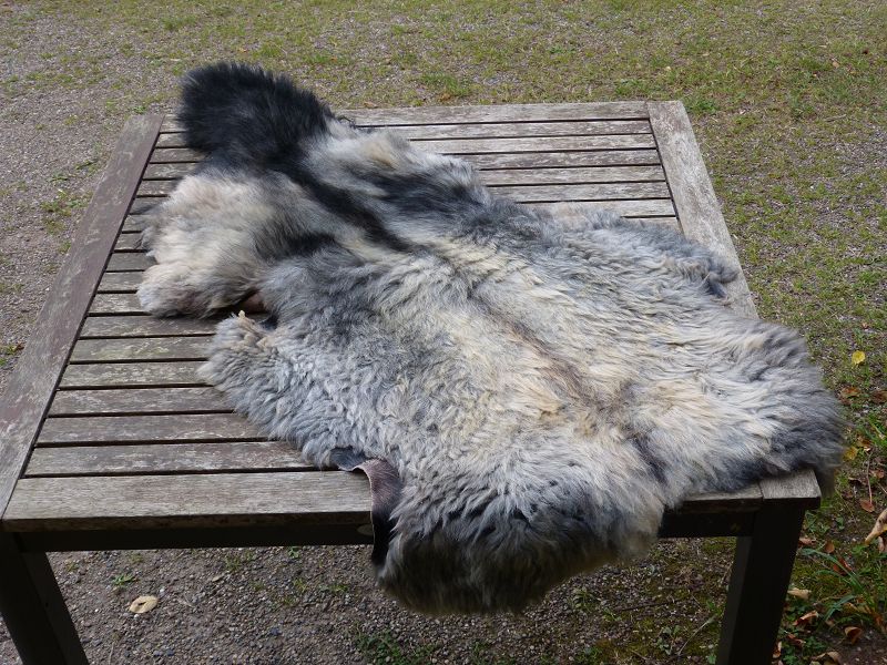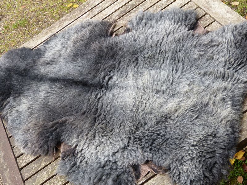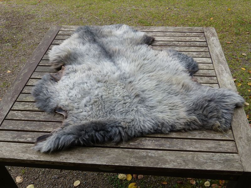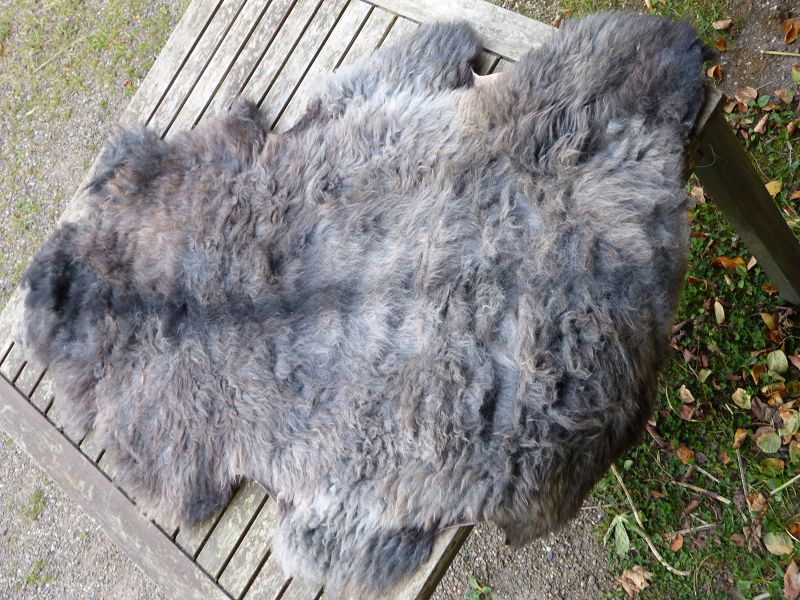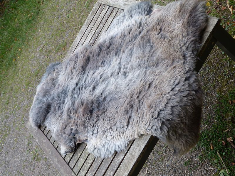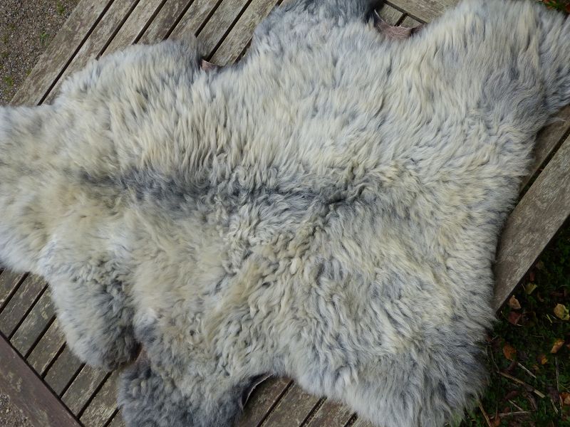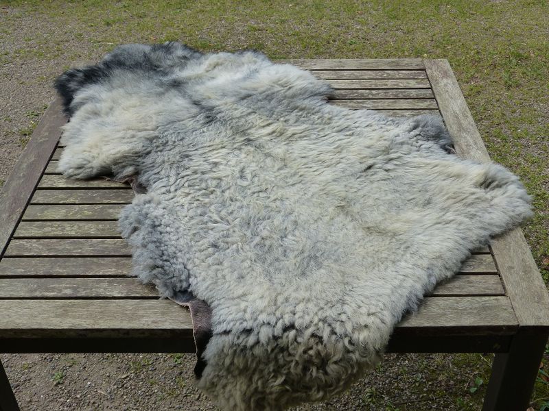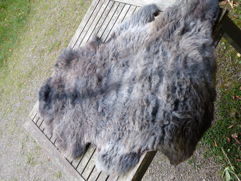 mittelgroßes Lammfell in blau-grau eher hell, schön gezeichnet, einmal geschoren